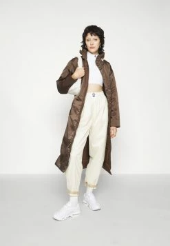 - Details: Belt included, inseam pockets, covered fastener, Two-way zipper